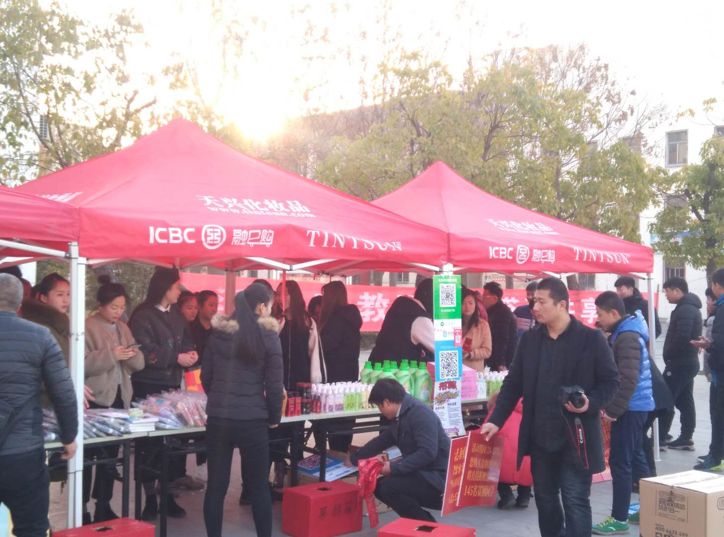 12月24-25日,工商管理系2016级电子商务和网络营销专业的二百多名同学在学院实训广场与合作企业河南天兴化妆品有限公司进行了为期两天的校园O2O营销实训活动,漯河市九五文化传媒有限公司对这次活动进行了技术支持。